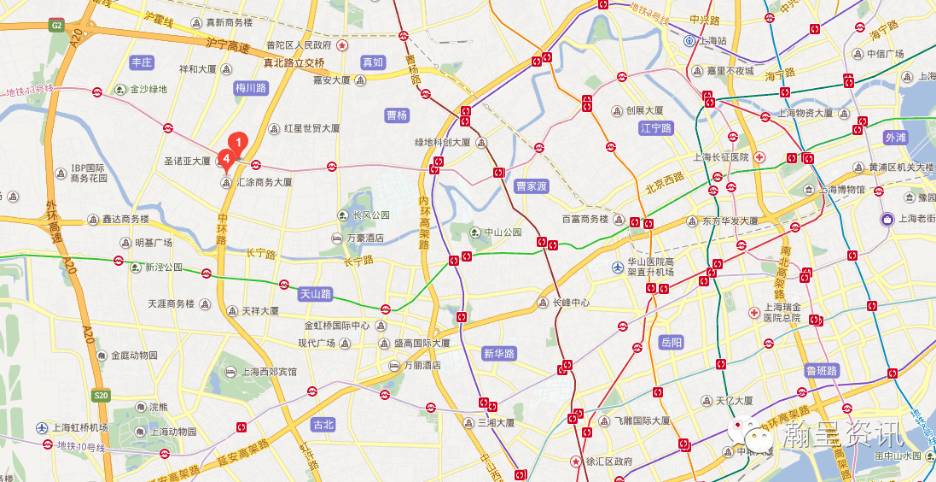 轨道交通:13号线(真北路站) 2号线(北新泾站)、3号线(4号线)金沙江路站